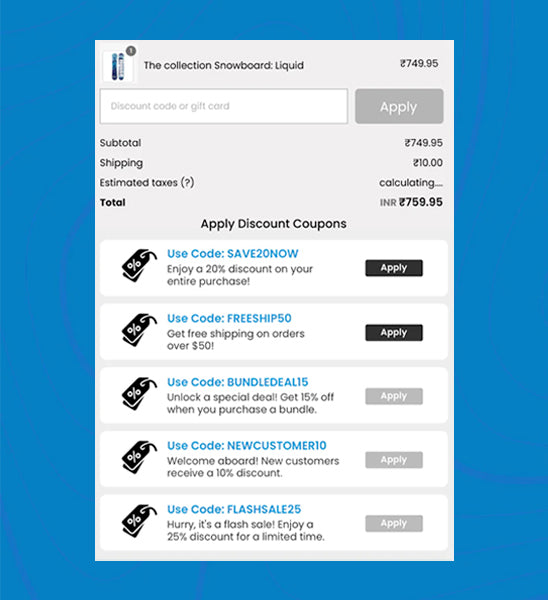 - Enhance engagement by showcasing relevant discounts at the checkout.